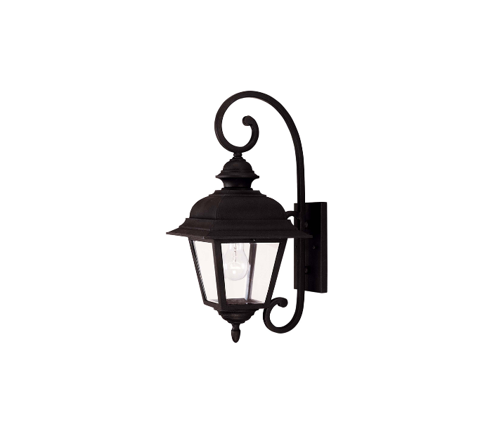 Westover 1 væglampe udført i et design af sortlakeret metal og klart glas. Lampen er fra amerikanske Savoy House og anvender 1 x E27 lyskilde og måler 50 cm i højden og 23 - 29 cm i bredde og dybde/fremspring.
