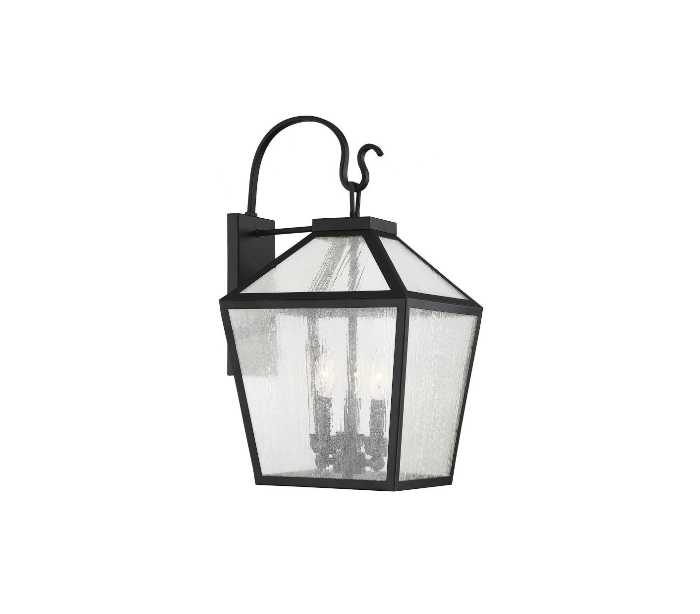 Woodstock 3 væglampe udført i et design af sortlakeret metal og klart glas med dråbe effekt. Lampen er fra amerikanske Savoy House og anvender 3 x E14 lyskilder og måler 60 cm i højden og 30 - 34 cm i bredde og dybde/fremspring.