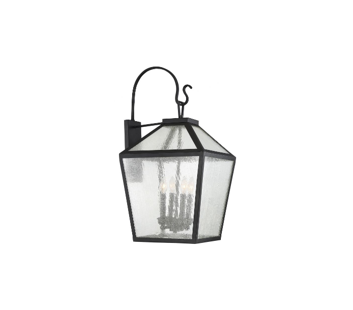 Woodstock 4 væglampe udført i et design af sortlakeret metal og klart glas med dråbe effekt. Lampen er fra amerikanske Savoy House og anvender 4 x E14 lyskilder og måler 77 cm i højden og 38 - 43 cm i bredde og dybde/fremspring.