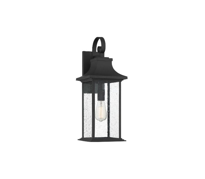 Hancock 1 væglampe udført i et design af mat sortlakeret metal og klart glas med dråbe effekt. Lampen er fra amerikanske Savoy House og anvender 1 x E27 lyskilde og måler 59 cm i højden og 22 - 23 cm i bredde og dybde/fremspring.