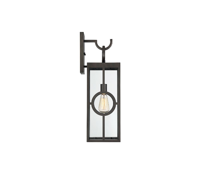 Lauren 1 væglampe udført i et design af antik bronzetlakeret metal og klart glas. Lampen er fra amerikanske Savoy House og anvender 1 x E27 lyskilde og måler 62 cm i højden og 19 - 23 cm i bredde og dybde/fremspring.