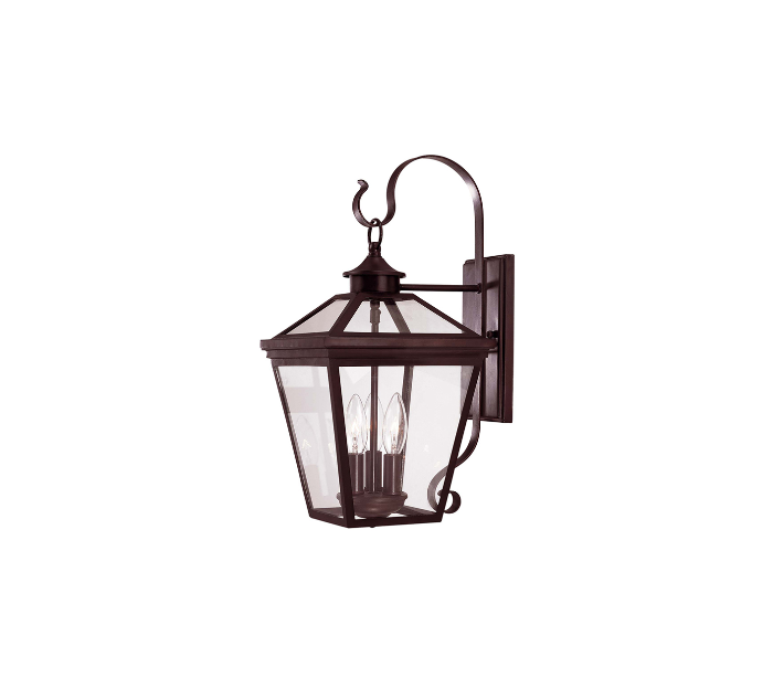 Ellijay 3 væglampe udført i et design af antik bronzelakeret metal og klart glas. Lampen er fra amerikanske Savoy House og anvender 3 x E14 lyskilder og måler 48 cm i højden og 22 - 28 cm i bredde og dybde/fremspring.