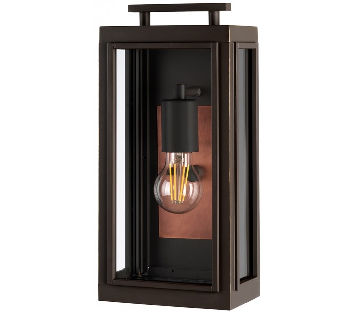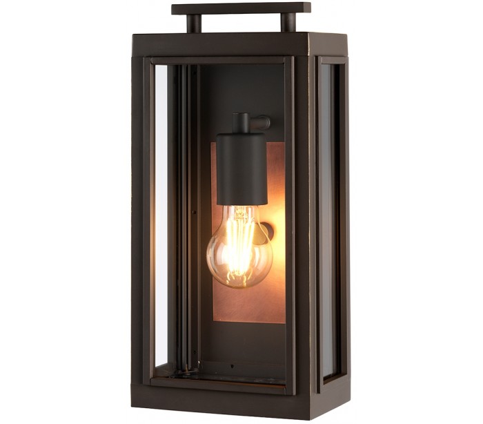 Sutcliffe Væglampe i stål og glas H35,5 cm 1 x E27 - Aldret bronze/Antik kobber/Klar