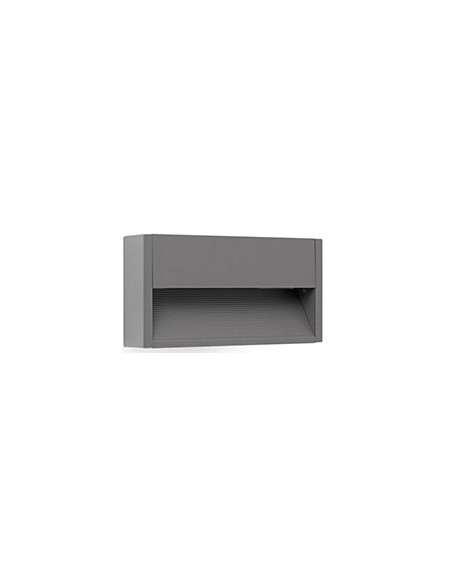Grada-2 udendørs væglampe i et moderne design, fremstillet i mørkegrå lakeret aluminium. Lampen måler 25 cm i bredden og anvender 1 x SMD LED lyskilde på 6W (Inkl.). Lampen kræver ikke indbygning i væggen.