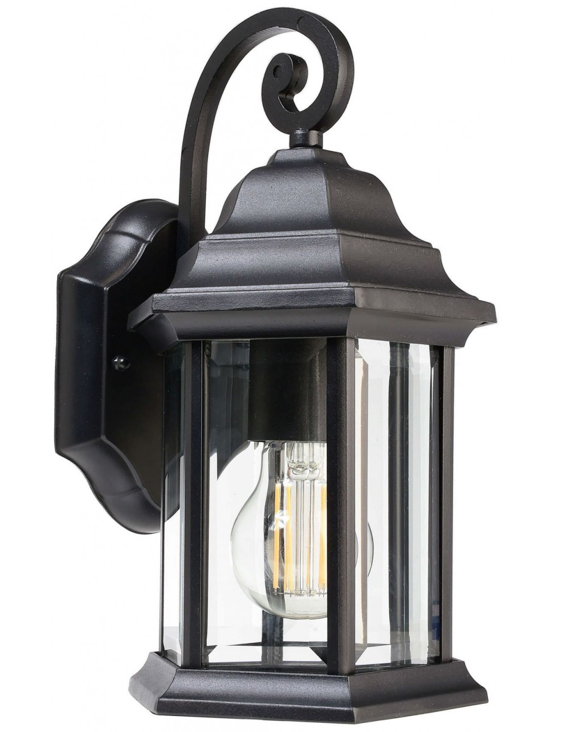 Udendørs væglampe udført i et design af sortlakeret aluminium og med klare glasruder. Lampen måler 28 cm i højden og anvender 1 x E27 lyskilde (ekskl.).