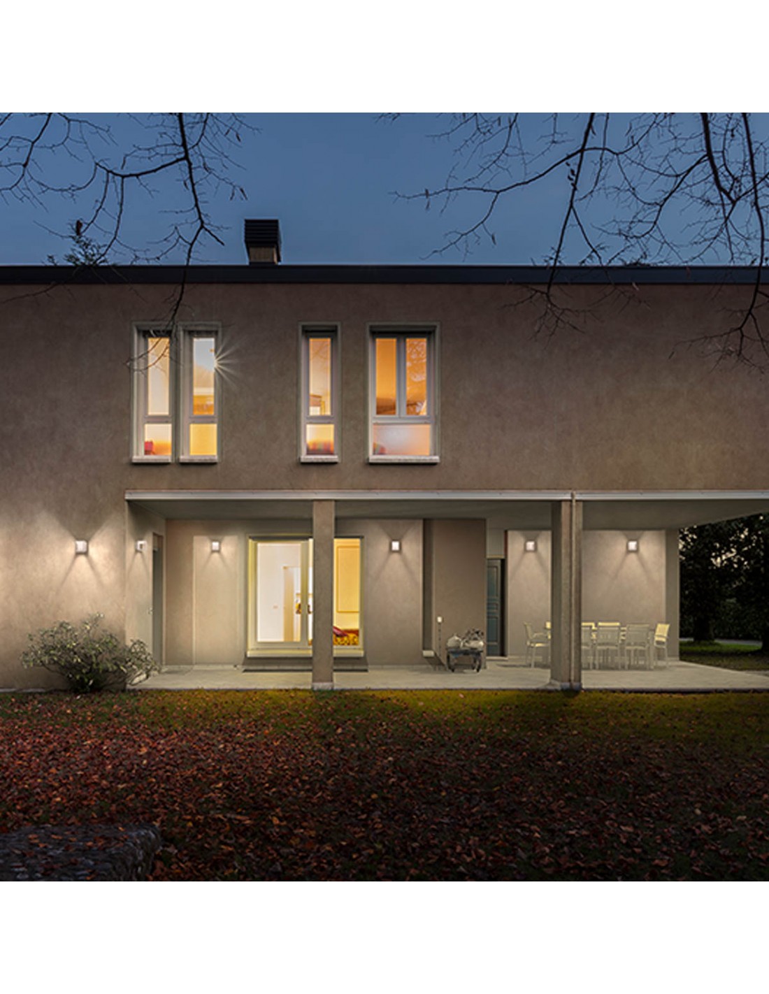 XIERA udendørs væglampe i et design fremstillet i aluminium og polycarbonat. Lampen måler 15,4 cm i højden og anvender 1 x 10W SMD LED lyskilde (Inkl.).