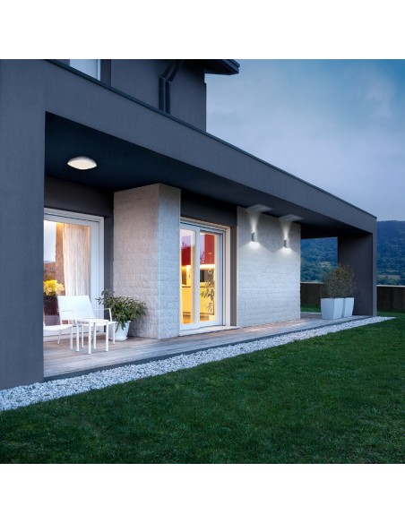 TWILL up-down udendørs væglampe i et design fremstillet i aluminium og glas. Lampen måler 17,4 cm i bredden og anvender 1 x 11W SMD LED lyskilde (Inkl.).