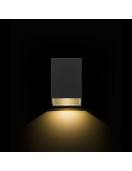PEKKO udendørs væglampe udført i et moderne design af antracit lakeret aluminium og med 3W LED lyskilde. Lampen måler 8,7 cm i højden og 6,5 cm i bredden.