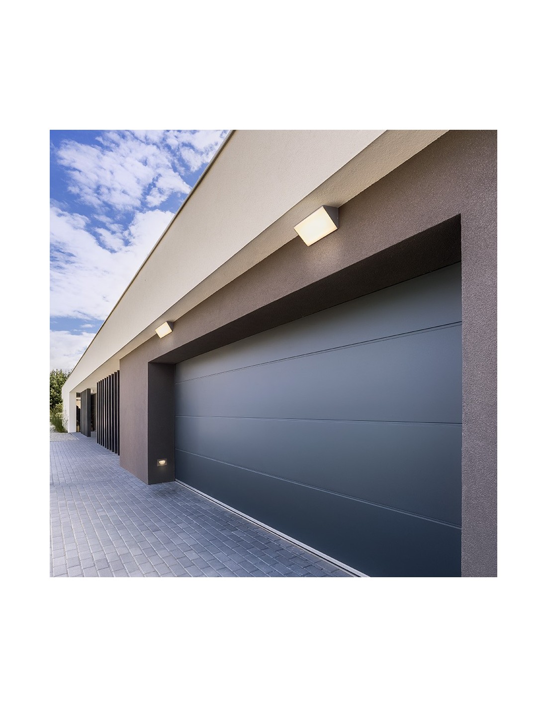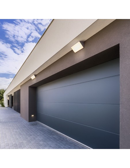 ADANTE udendørs væglampe udført i et moderne design af antracit lakeret aluminium og med 21W LED lyskilde. Lampen måler 22 cm i bredden og 9,8 cm i højden.