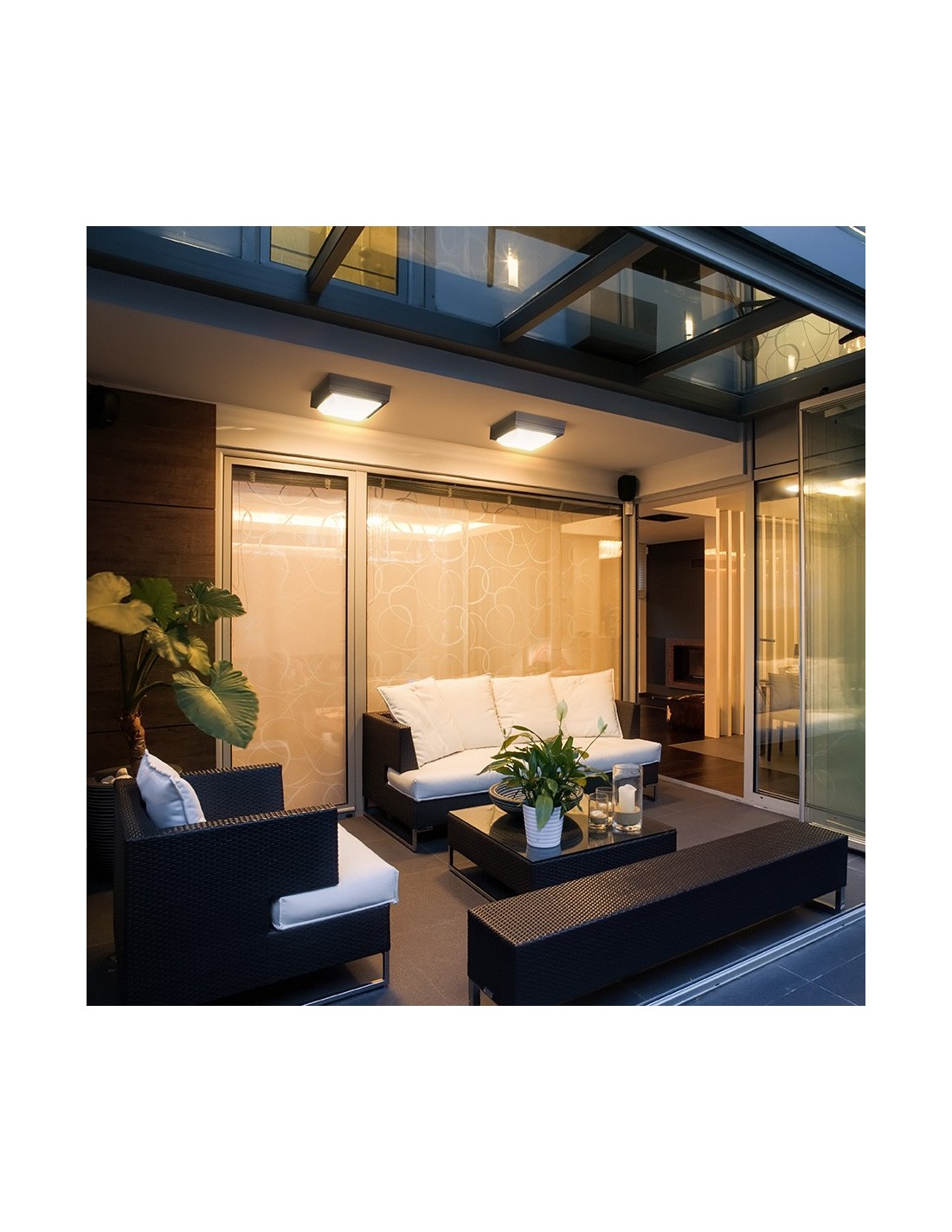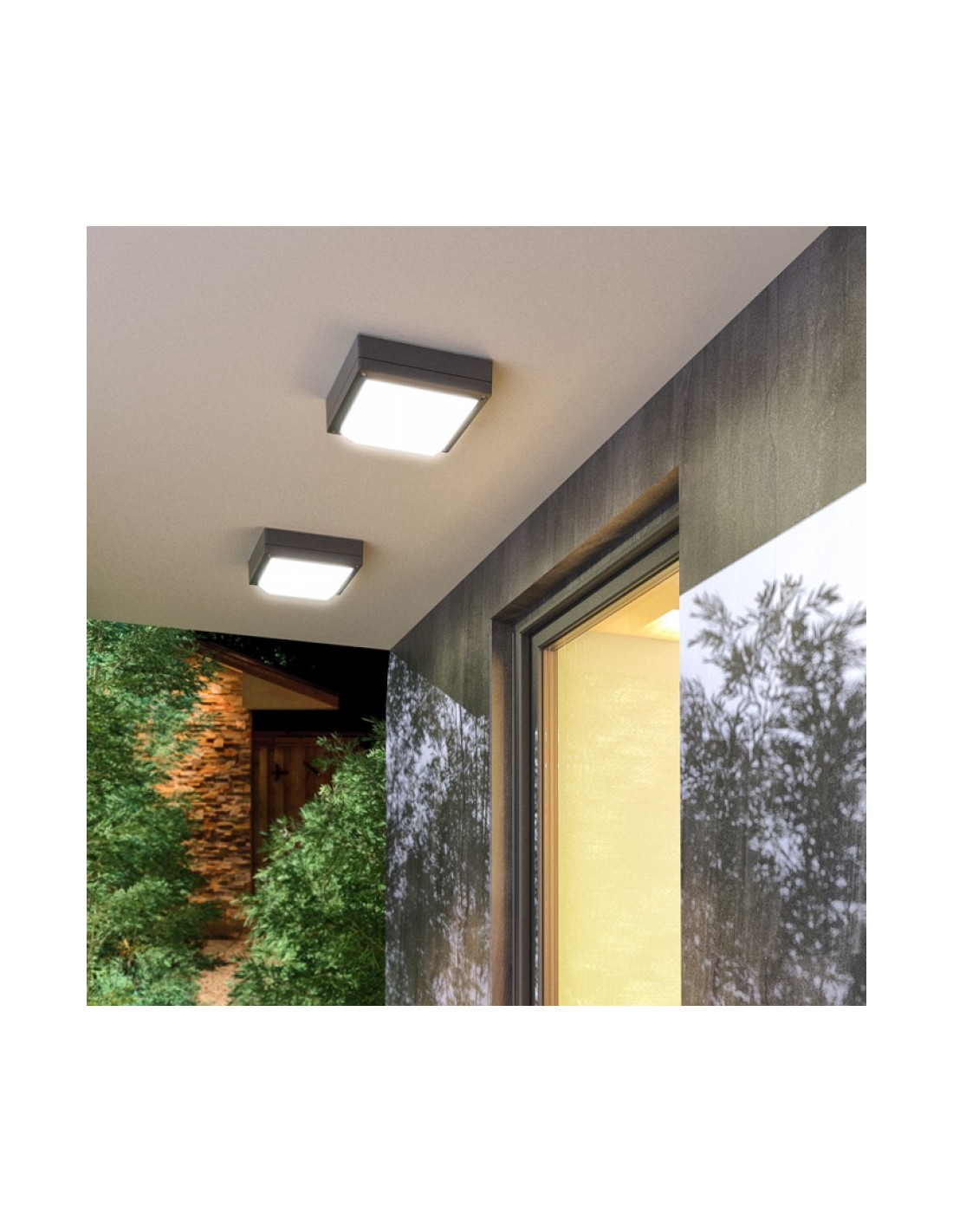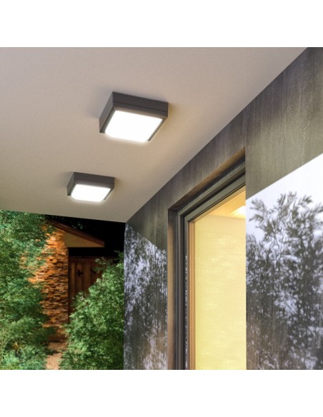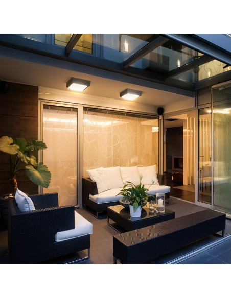 DELTA 215 udendørs væglampe udført i et moderne design af antracit lakeret aluminium og anvender 2 x E27 lyskilder. Lampen måler 21,5 cm i bredden og 21,5 cm i højden.