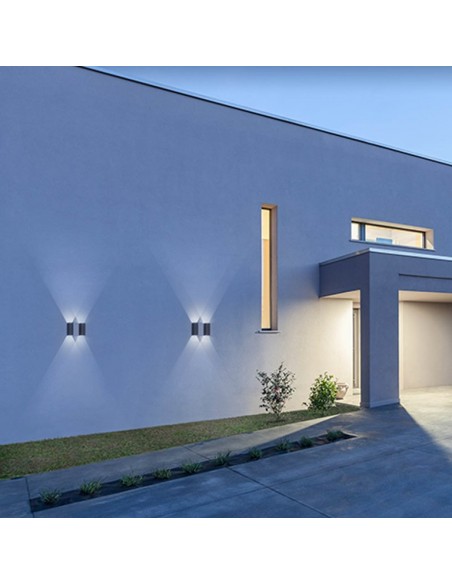 TAV Up-Down udendørs væglampe i et design fremstillet i aluminium og glas. Lampen måler 24 cm i højden og anvender 2 x 6W COB LED lyskilder (Inkl.).