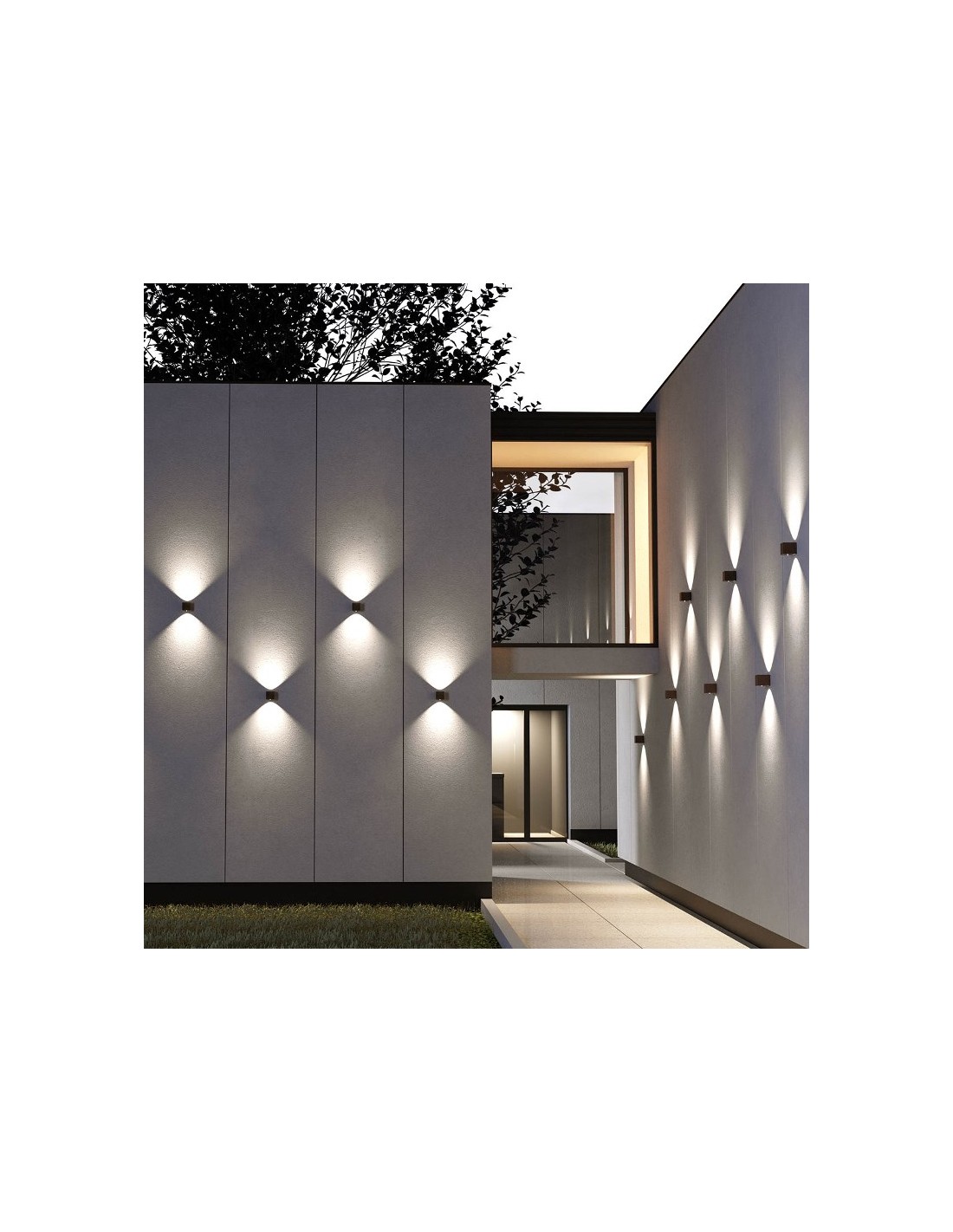 TEKO Up-Down udendørs væglampe i et design fremstillet i aluminium og glas. Lampen måler 9,1 cm i højden og anvender 2 x 6W COB LED lyskilder (Inkl.).