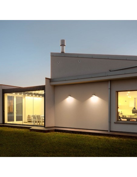 PHASER udendørs væglampe i et design fremstillet i aluminium og glas. Lampen måler 16,2 cm i bredden og anvender 1 x 12W COB LED lyskilde (Inkl.).