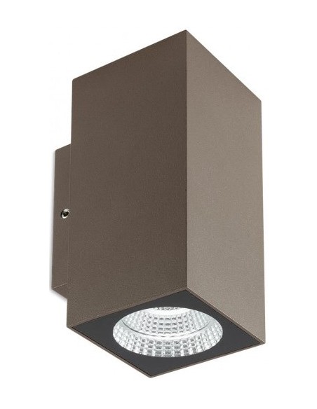 QUAD Up-Down Væglampe i aluminium og glas H12,8 cm 2 x 3W COB LED - Mat mørkebrun