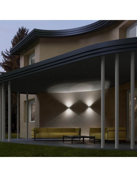 LOG Up-Down udendørs væglampe i et design fremstillet i aluminium og glas. Lampen måler 10,7 cm i bredden og anvender 2 x 6W COB LED lyskilder (Inkl.).
