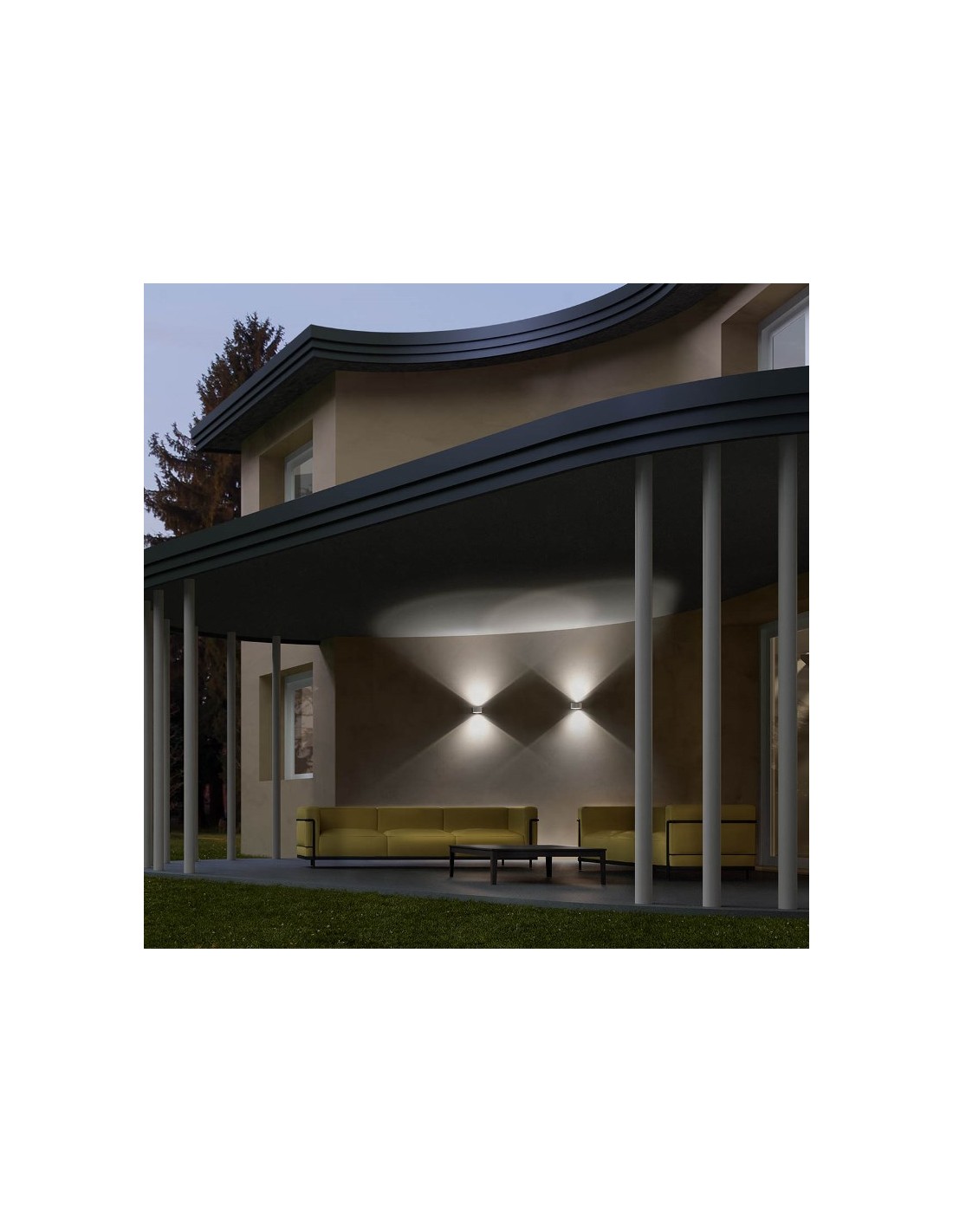LOG Up-Down udendørs væglampe i et design fremstillet i aluminium og glas. Lampen måler 10,7 cm i bredden og anvender 2 x 6W COB LED lyskilder (Inkl.).