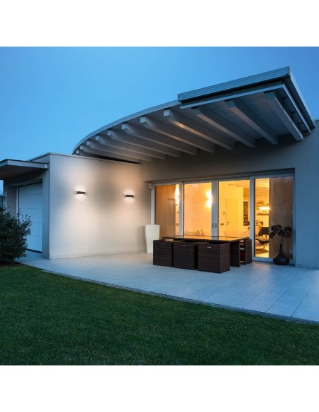 LAMPRIS Up-Down udendørs væglampe i et design fremstillet i abs og polycarbonat. Lampen måler 17,2 cm i bredden og anvender 1 x 9W SMD LED lyskilde (Inkl.).