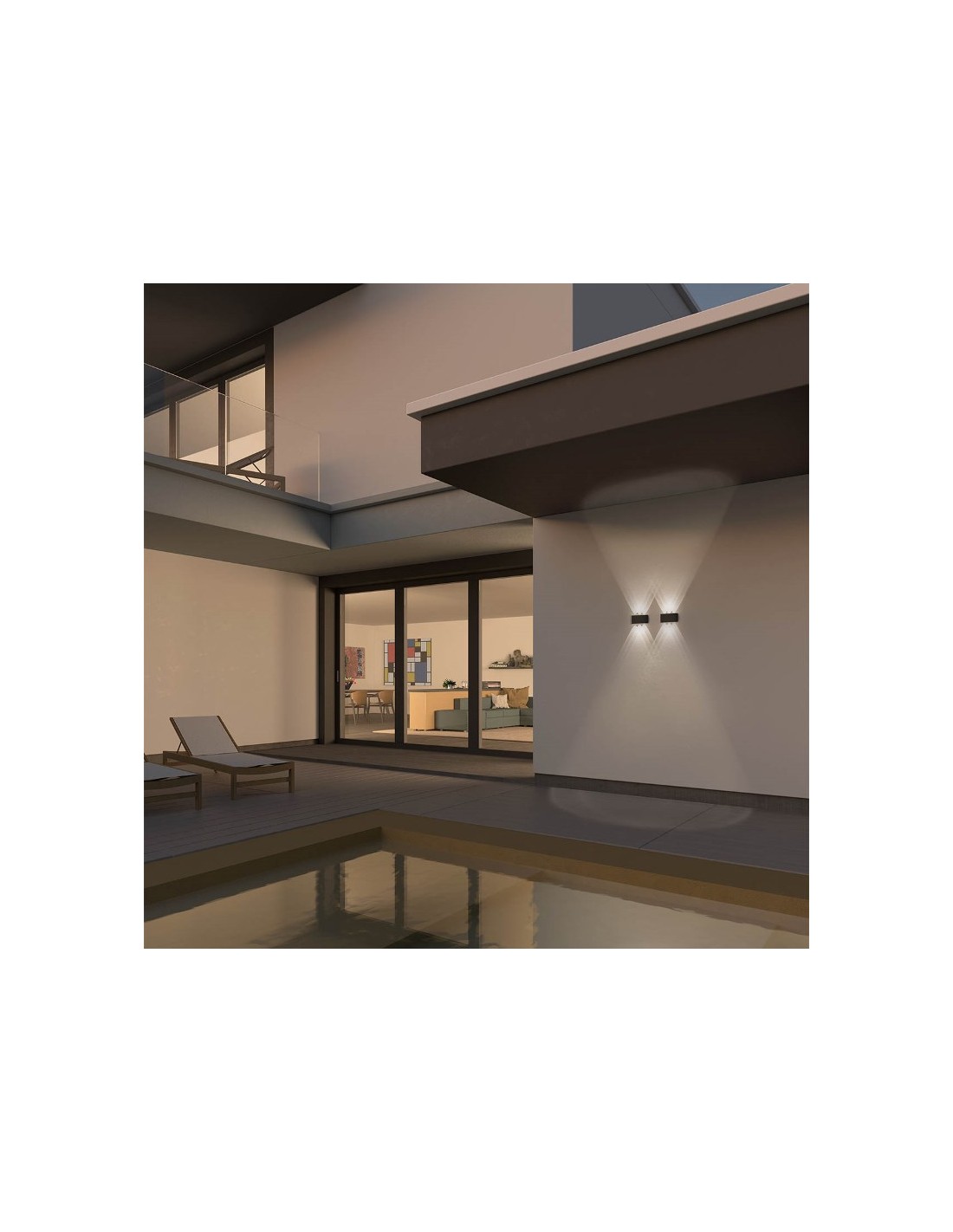 FABO Up-Down udendørs væglampe i et design fremstillet i aluminium og glas. Lampen måler 17 cm i bredden og anvender 1 x 6W SMD LED lyskilde (Inkl.).