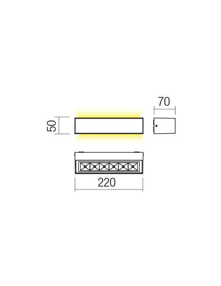 AROOS Up-Down udendørs væglampe i et design fremstillet i aluminium og glas. Lampen måler 22 cm i bredden og anvender 1 x 12W SMD LED lyskilde (Inkl.).