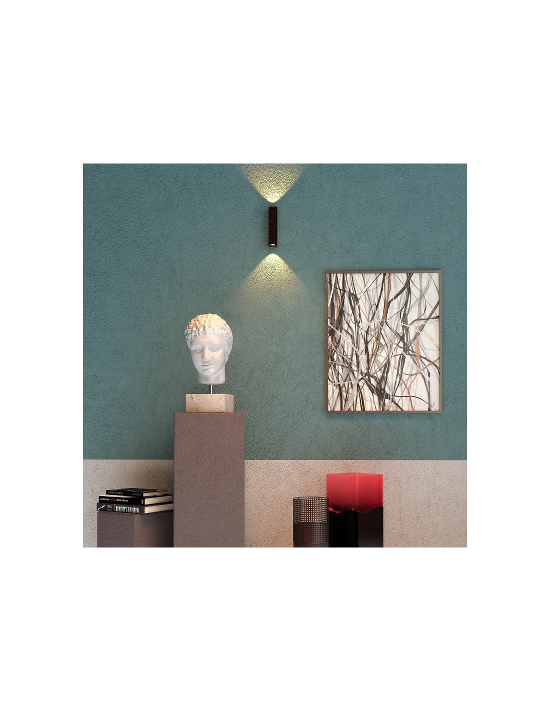 SABER Up-Down væglampe udført i et design fremstillet i metal med sort ask træ struktur. Væglampen måler 18 cm i højden og anvender 2 x 3W SMD LED lyskilder (Inkl.).