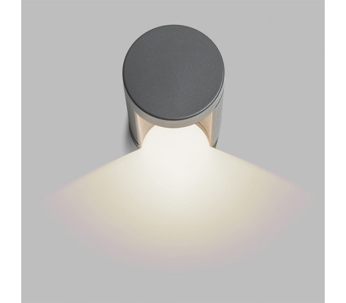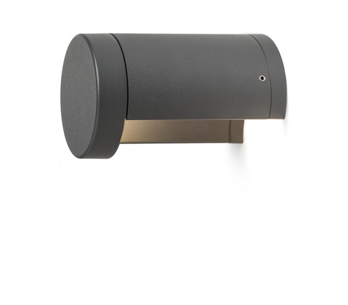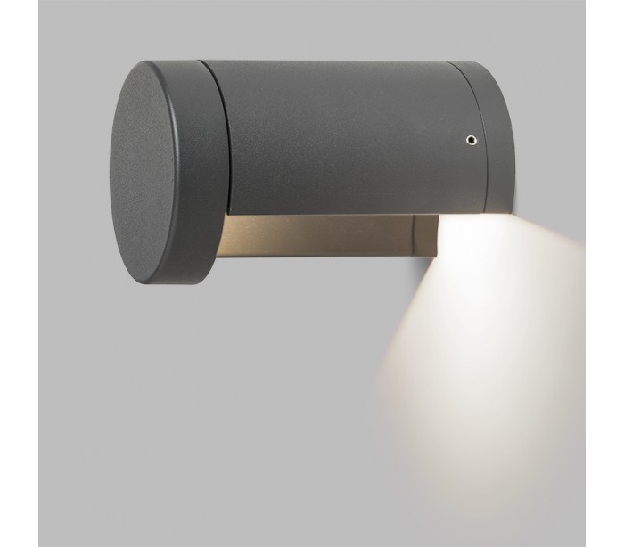 Moderne og stilren udendørs væglampe i et design, fremstillet i antracit farvet aluminium. Lampen har indbygget LED lyskilde på kun 7W.