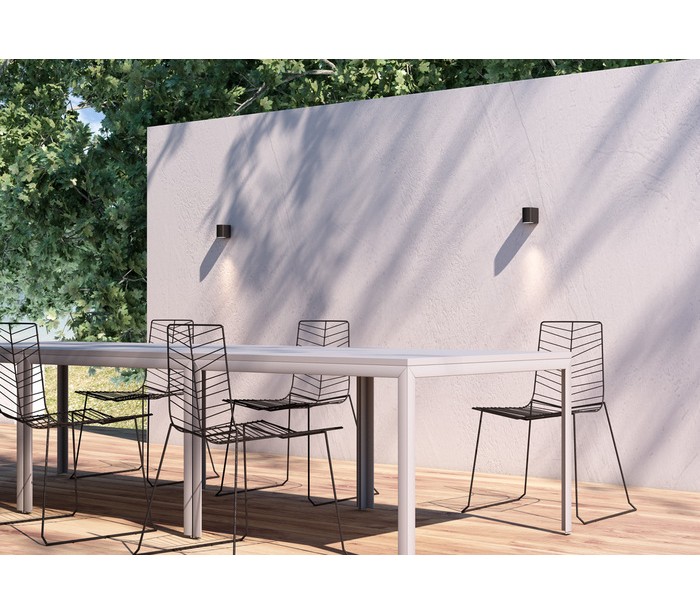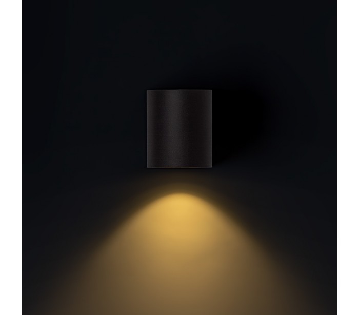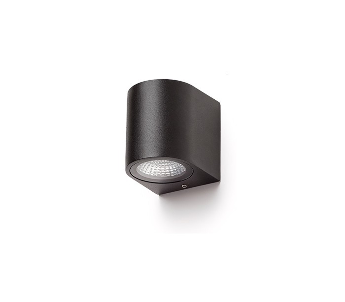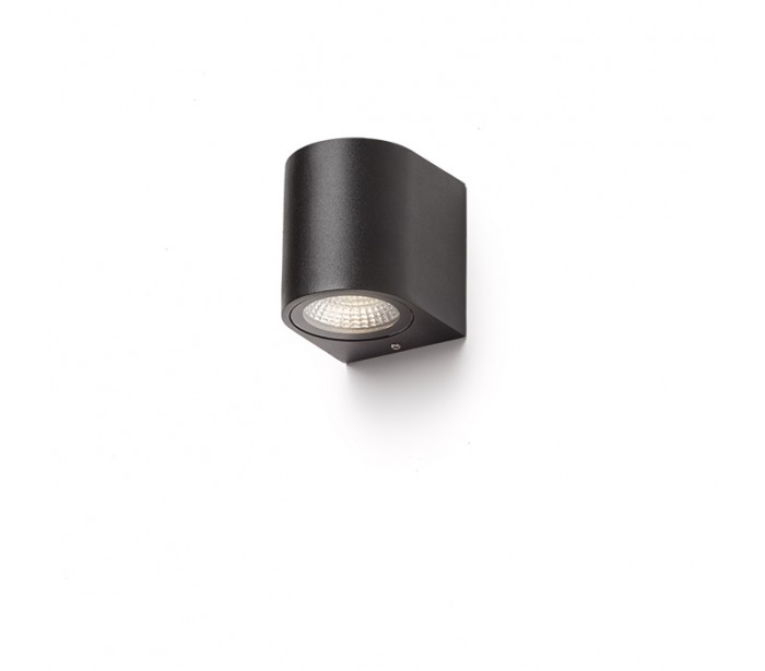 Moderne udendørs væglampe i et design, fremstillet i antracitfarvet aluminium. Lampen har indbygget LED lyskilde på kun 3W.