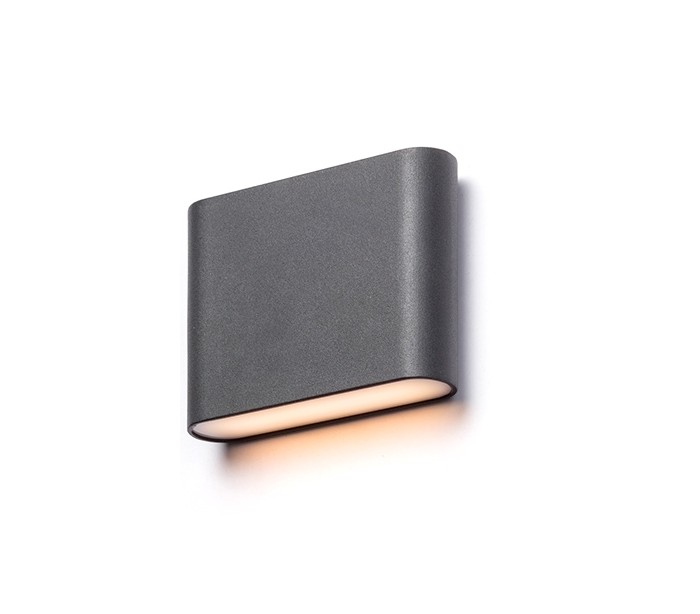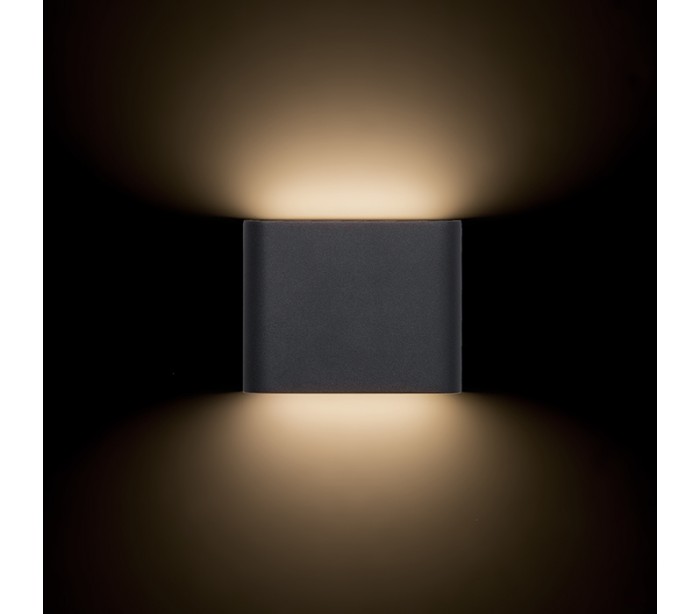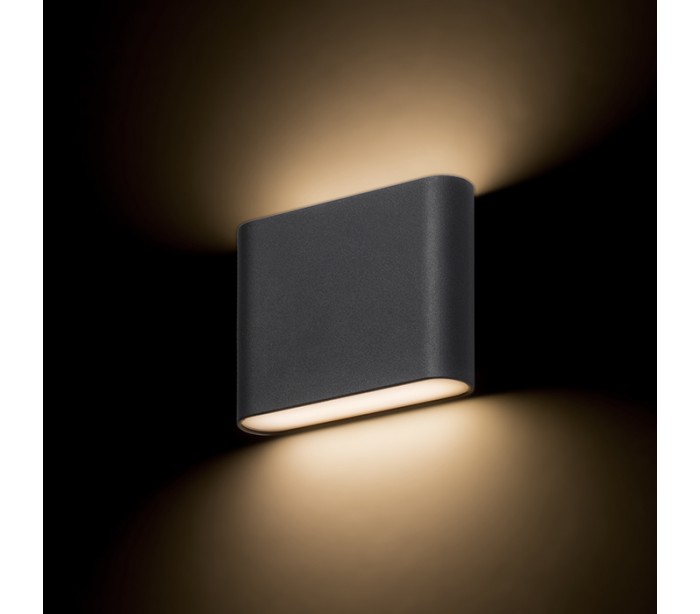 Moderne udendørs væglampe i et design med belysning op og ned ad væggen, fremstillet i antracitfarvet aluminium. Lampen har indbygget LED lyskilde på kun 2 x 3W.