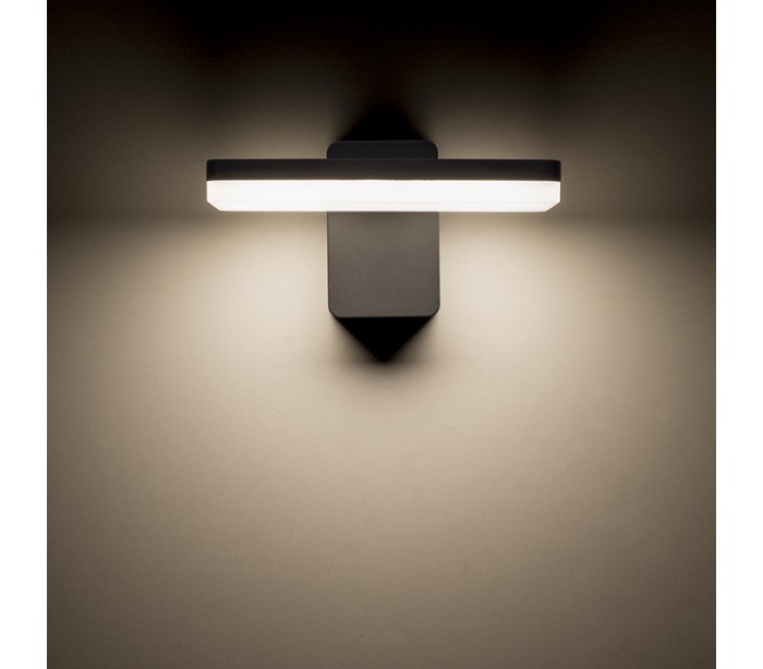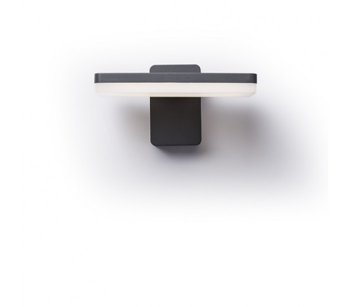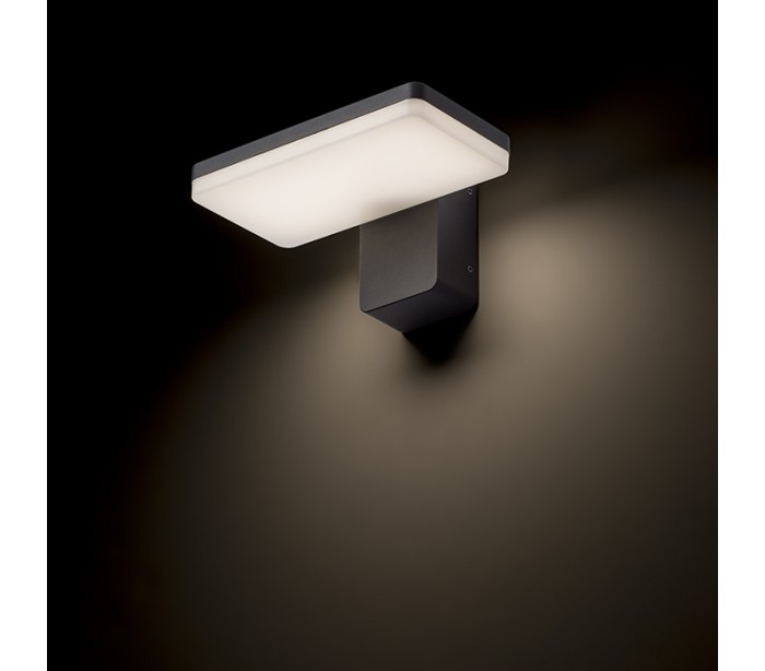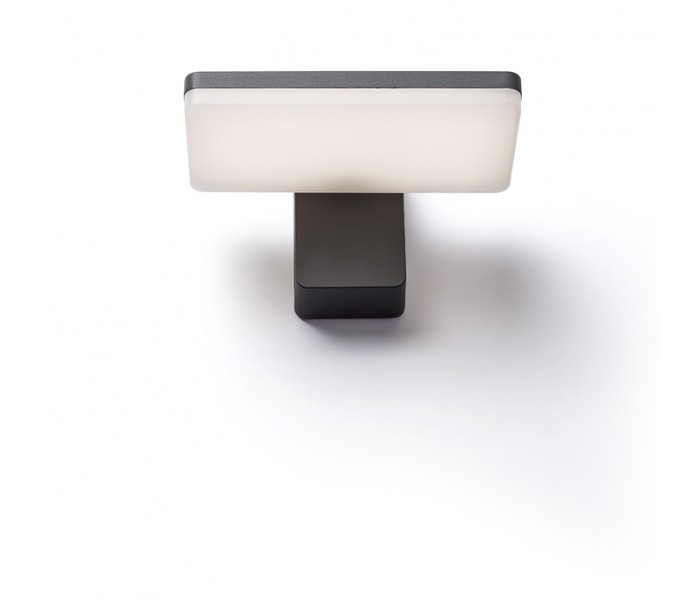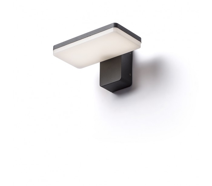 Væglampe til udendørs brug i et design, fremstillet i antracitfarvet aluminium. Lampen har indbygget LED lyskilde på 12W.
