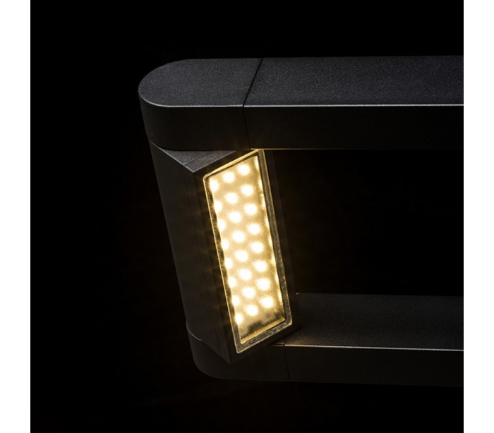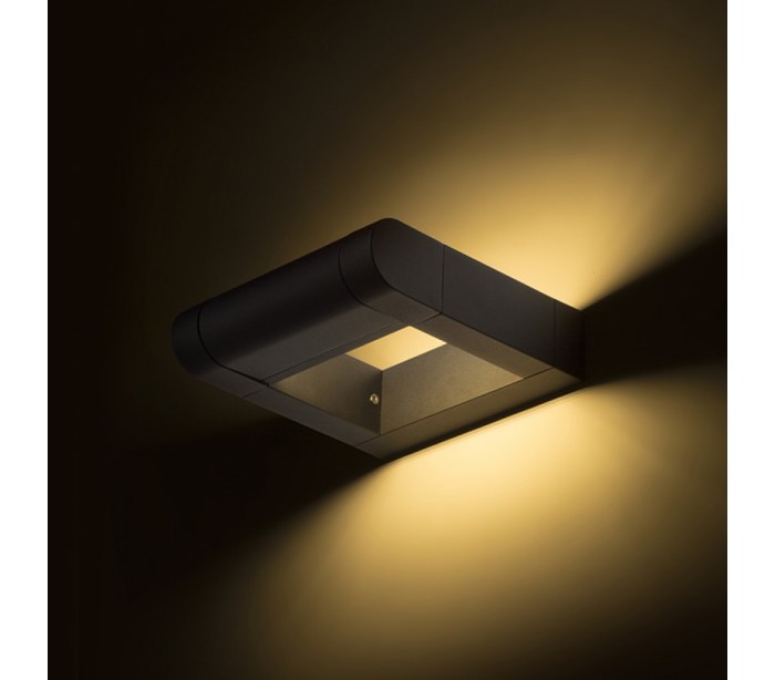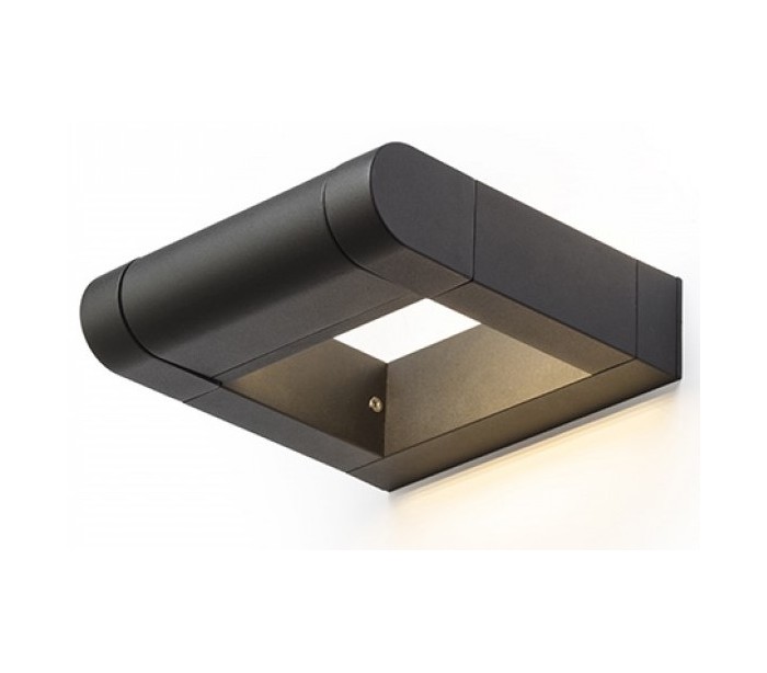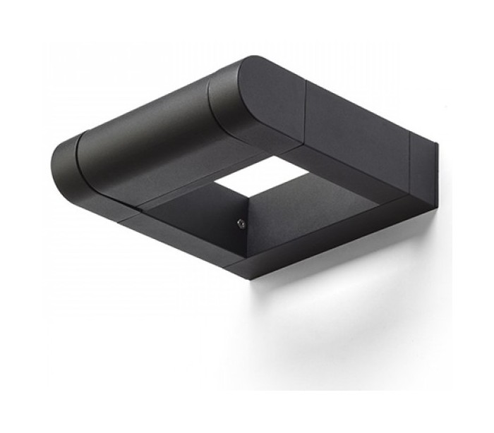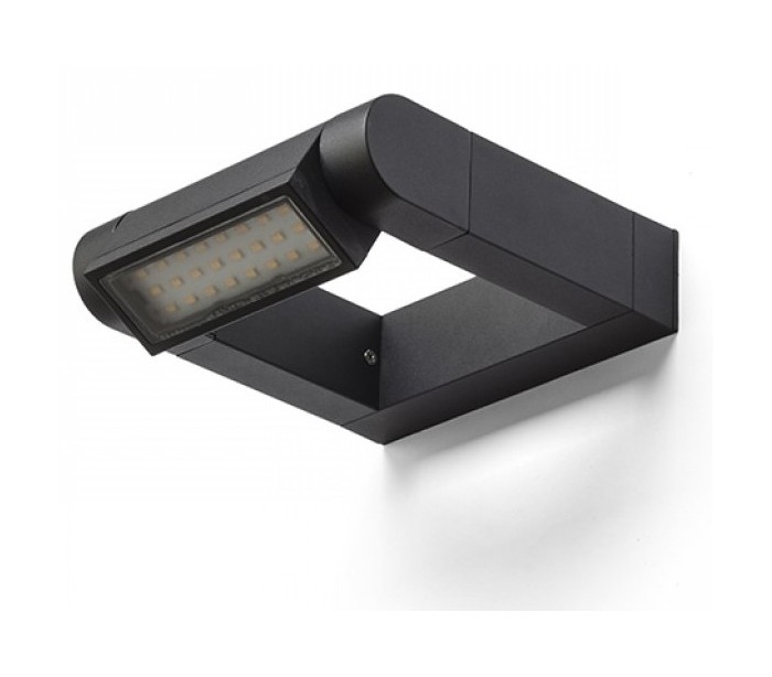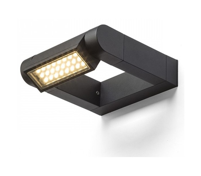 Væglampe til udendørs brug i et design, fremstillet i mat sortlakeret aluminium. Lampen har indbygget LED lyskilde på 8W og kan justeres i retningen, således optimal belysning opnås.