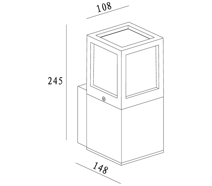 Væglampe i et moderne design til E27 lyskilde (LED lyskilder kan anvendes). En væglampe der vil give væg og område en brugbar belysning. Lampen måler 24,5 cm i højden, og 14,8 cm i dybde/fremspring.