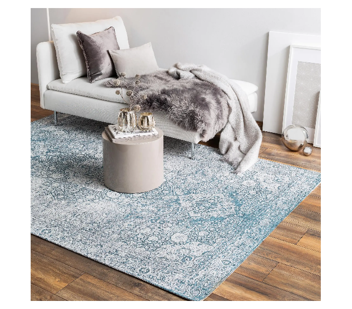 Dekorativt løst tæppe til entre, soveværelse eller stue, udført i et design af 55% polyakryl/27% polyester/17% bomuld/1% latex. Tæppet måler 160 x 235 cm i bredde og dybde.
