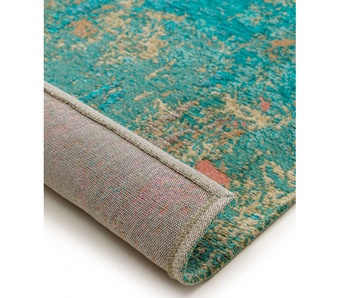 Dekorativt løst tæppe til entre, soveværelse eller stue, udført i et design af 79% polyester/20% bomuld/1% latex. Tæppet måler 240 x 340 cm i bredde og dybde.